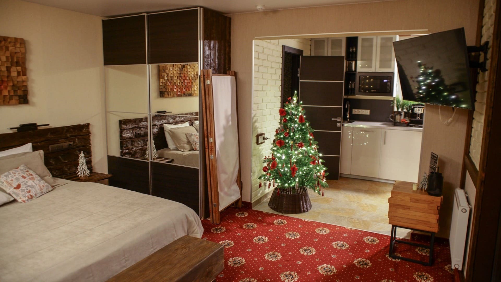 Каждый наш номер оснащен кухней со всей необходимой техникой и посудой для комфортного приготовления пищи.